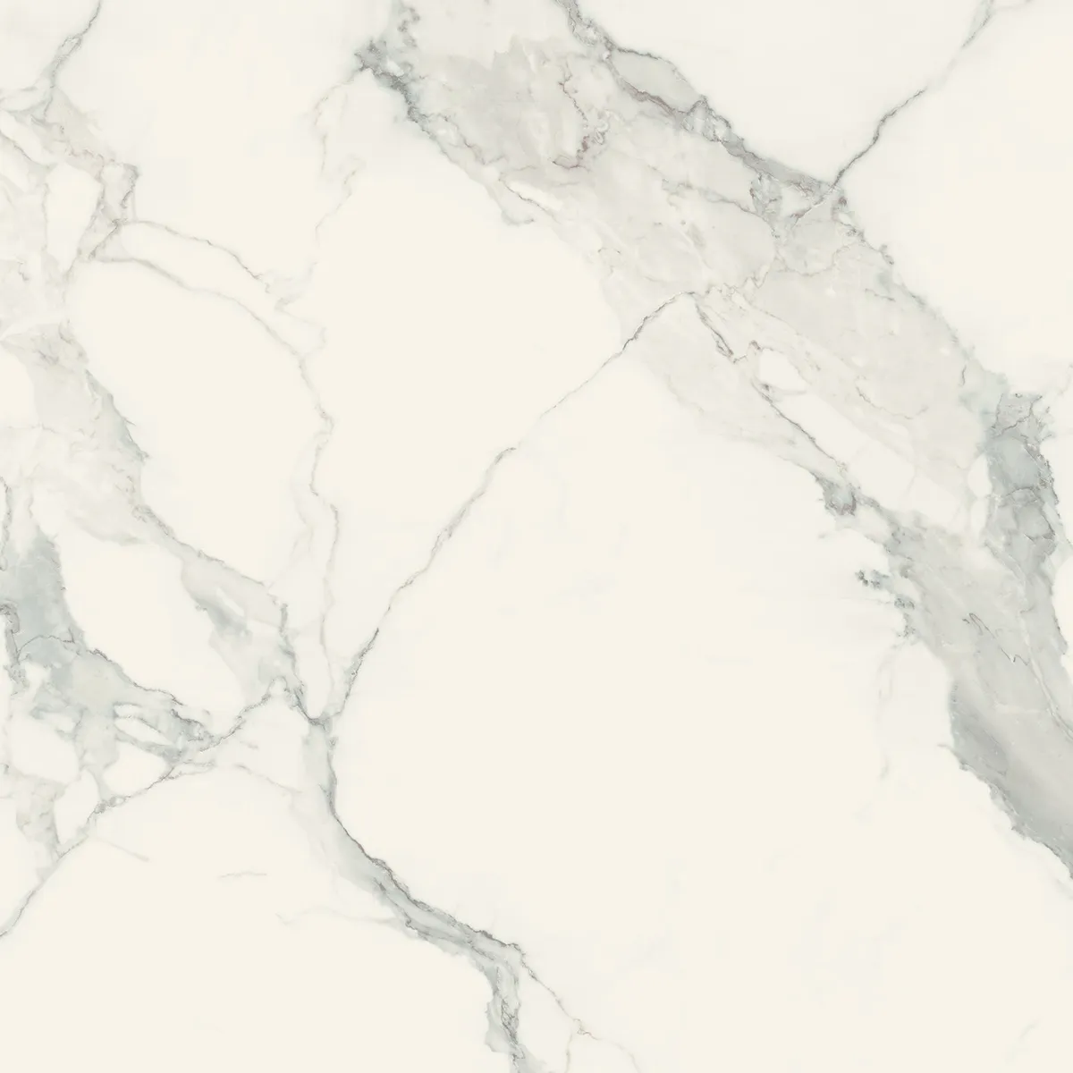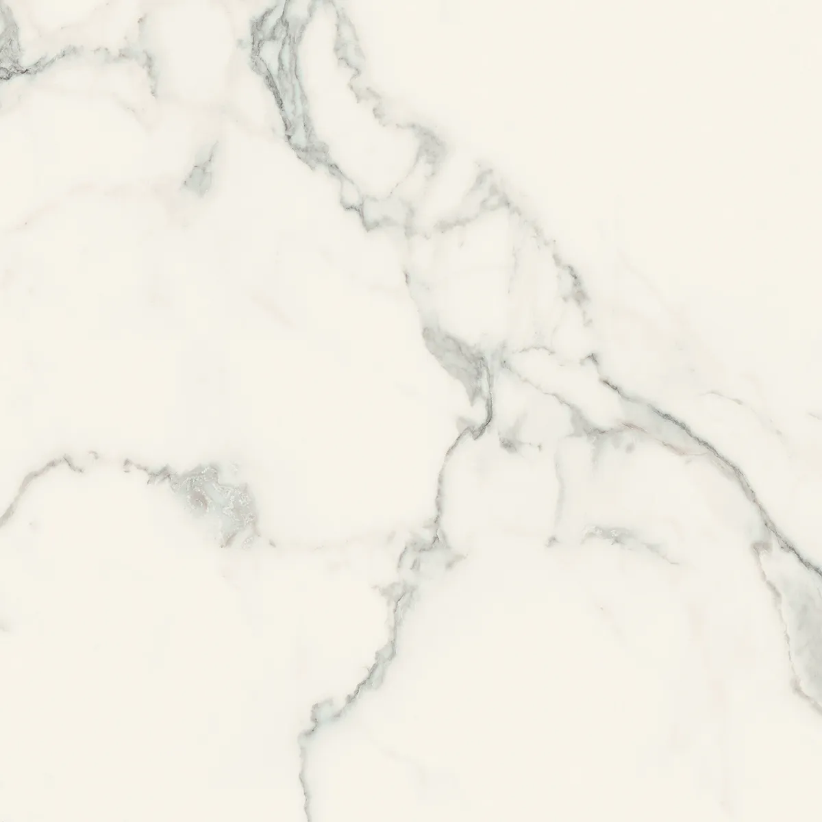Ректифицированный. Полированная поверхность. Классический рисунок натурального мрамора Statuario холодного белого цвета с серыми венами. Толщина 6 мм.