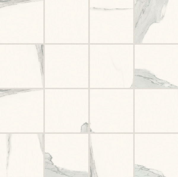Полированная поверхность. Классический рисунок натурального мрамора Statuario холодного белого цвета с серыми венами. Толщина 6 мм.