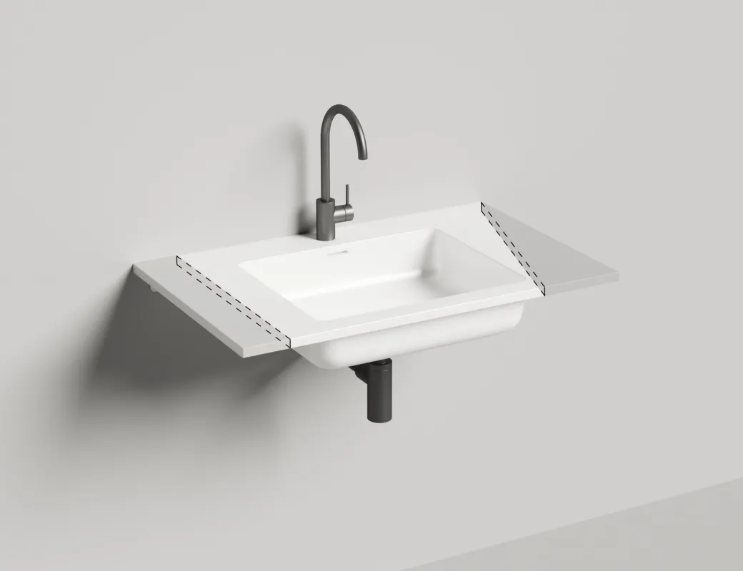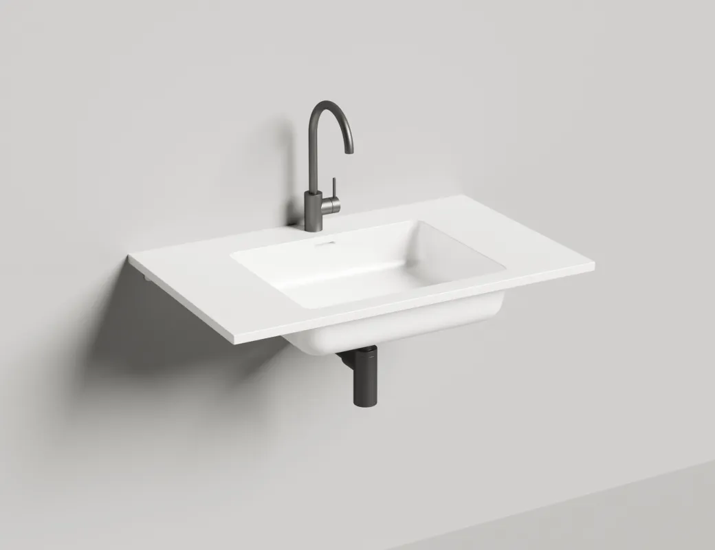 Серия подвесных раковин выполнена в материале S-Stone. Изготовленные по технологии Solid Surface, раковины имеют полностью монолитную структуру по всей толщине изделия. Каждая раковина ONDA включает в себя удобную чашу и столешницу, на которой можно расположить туалетные принадлежности. Возможна подвесная установка с креплением на кронштейны к стене, а также использование раковины для оформления мебели для ванной комнаты по собственным чертежам, с учётом особенностей конкретного помещения.