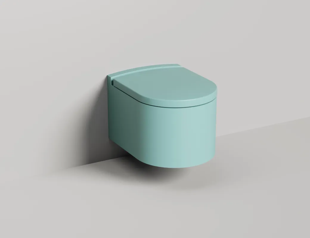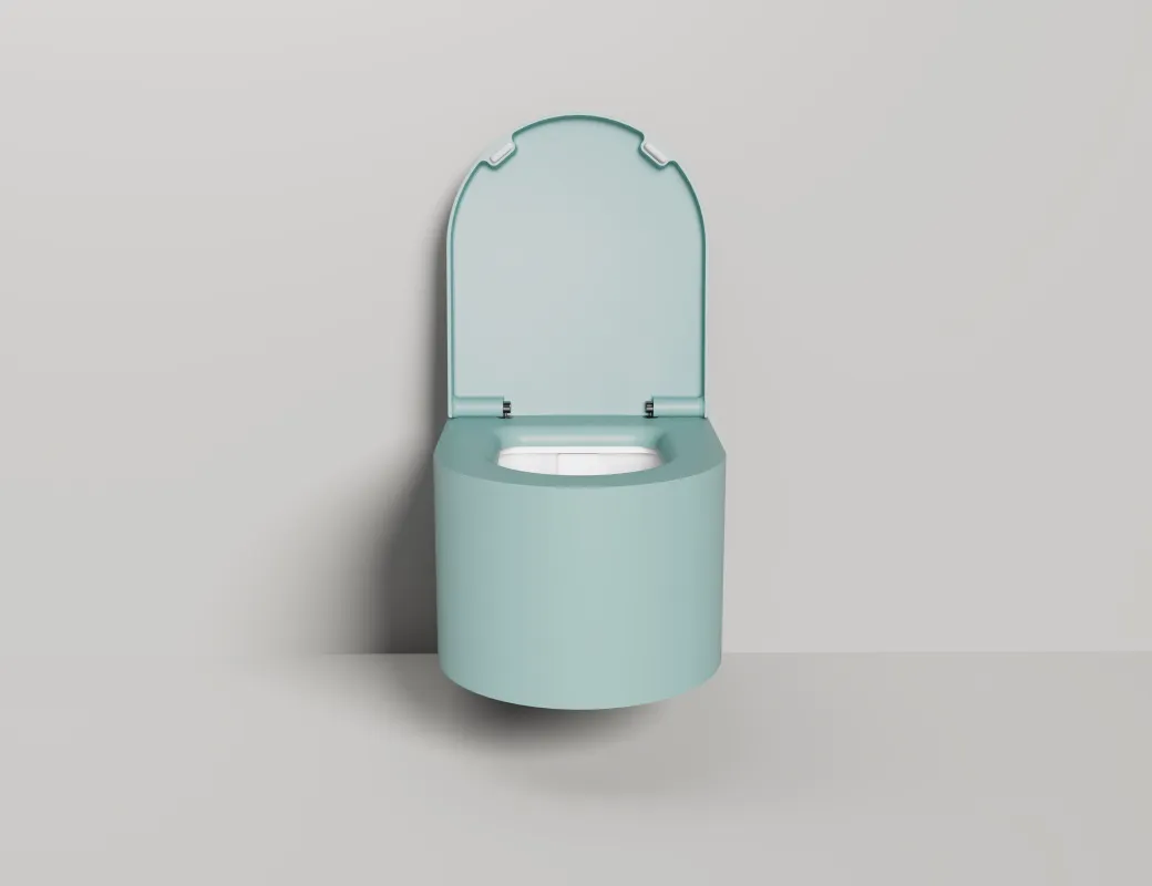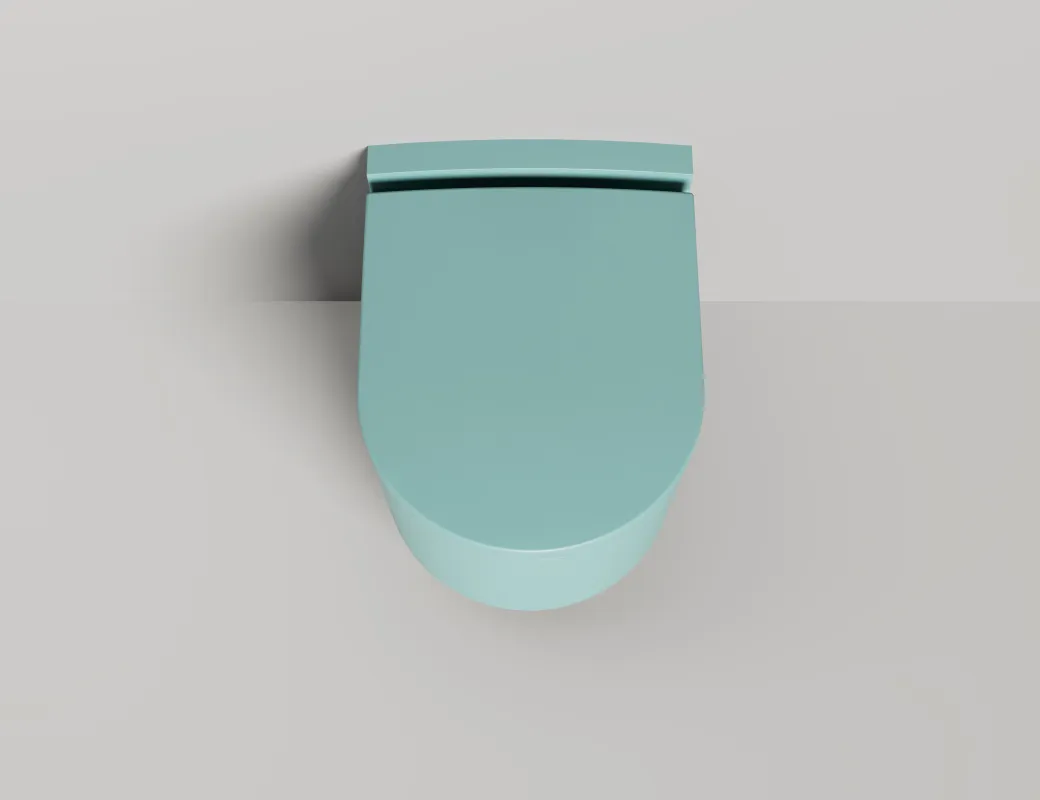 Унитаз GEMELLI — это комбинация безободковой керамической основы белого цвета (VitrA) и внешнего корпуса, изготавливаемого из материала S-Stone, который может быть окрашен по палитре RAL Classic (только светлые оттенки).