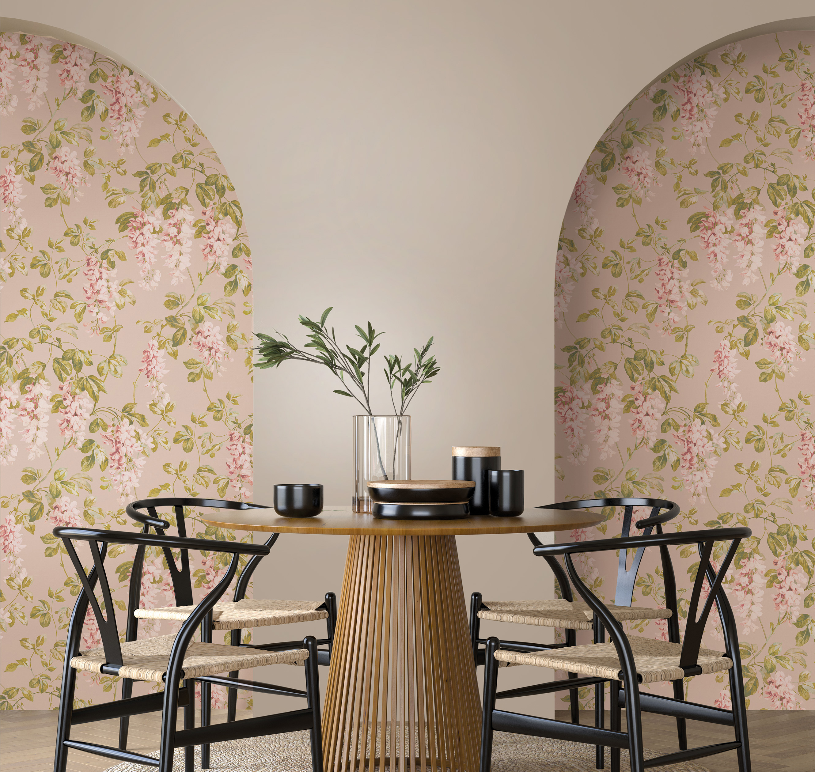 Коллекция предлагает бесшовную оклейку по всему периметру комнаты, создавая эффект полного погружения. Это как шаг в пышный цветущий сад, где каждый уголок наполнен гармонией и умиротворением.