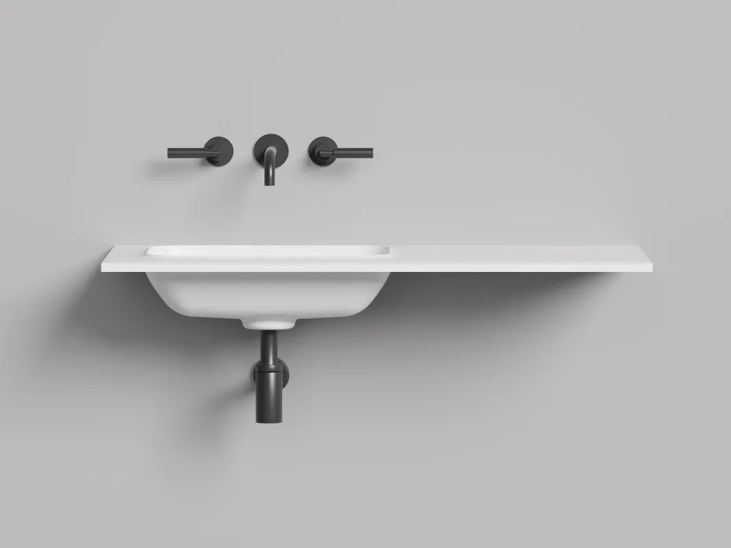 Раковина без отверстия под смеситель, донный клапан. Раковина БЕЗ отверстия* под смеситель, донный клапан. ONDA EDGE - индивидуальный размер раковины- столешницы ограниченный только геометрией чаши. В том числе возможно изготовление вариантов с левым / правым крылом для установки над стиральной машиной. |