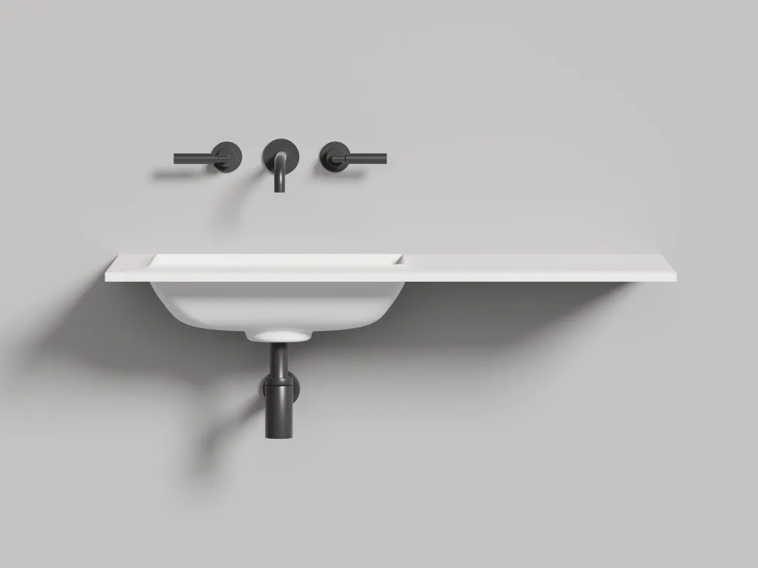 Раковина без отверстия под смеситель, донный клапан. Раковина БЕЗ отверстия* под смеситель, донный клапан. ONDA EDGE - индивидуальный размер раковины- столешницы ограниченный только геометрией чаши. В том числе возможно изготовление вариантов с левым / правым крылом для установки над стиральной машиной. |