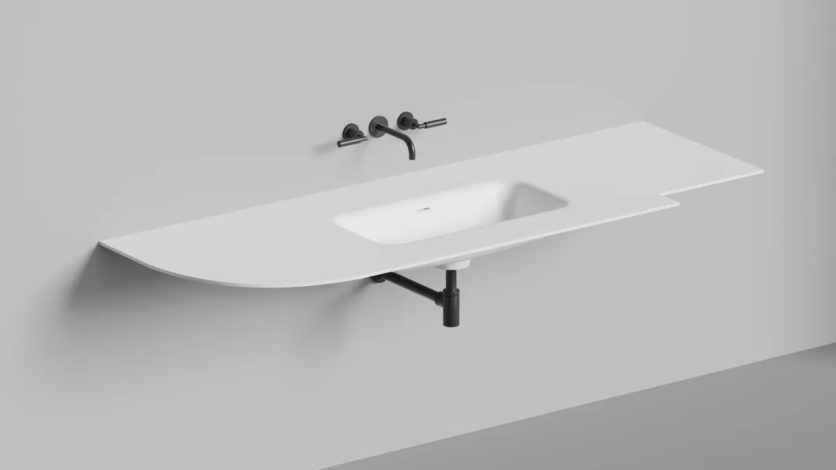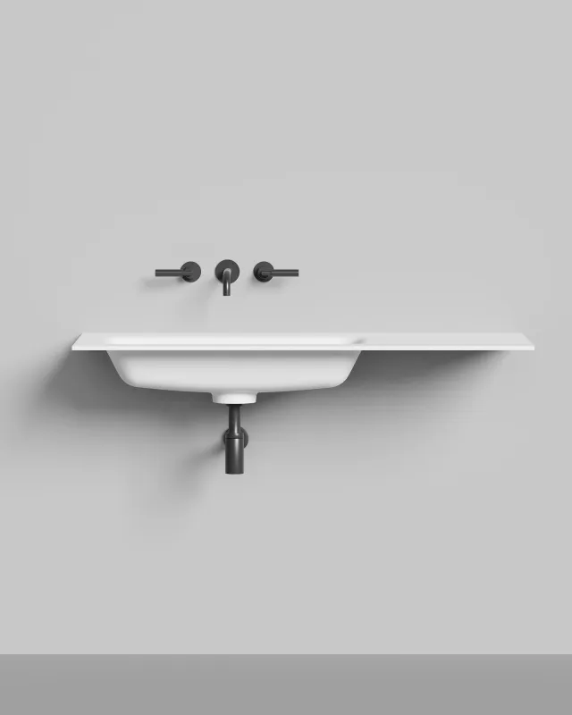 Идея и основное преимущество ONDA — в широких возможностях индивидуального обреза, который ограничен только геометрией чаши. В том числе возможно изготовление вариантов раковины с левым / правым крылом для установки, например, над стиральной машиной.
