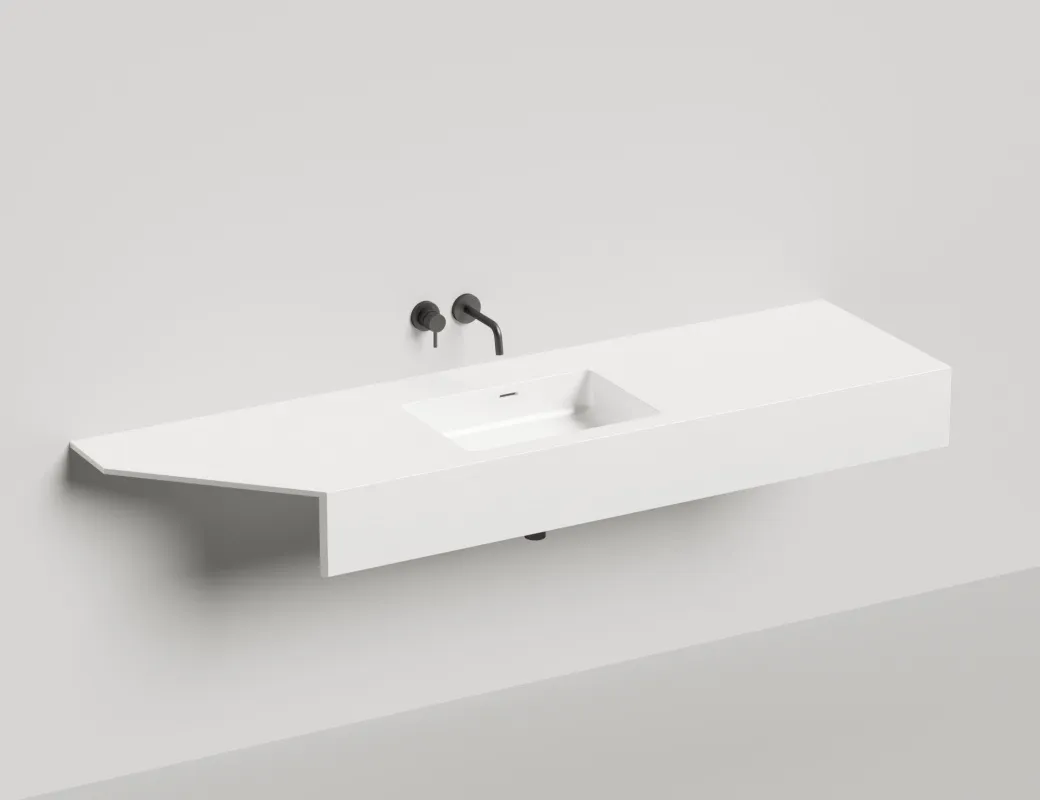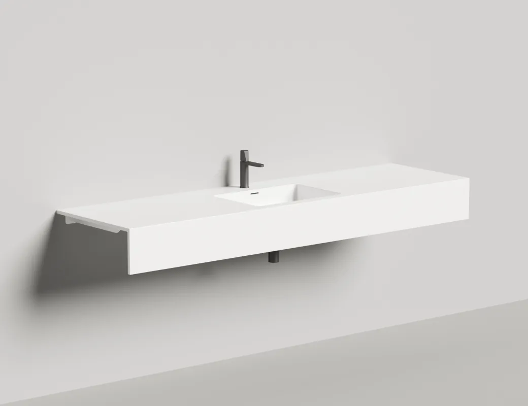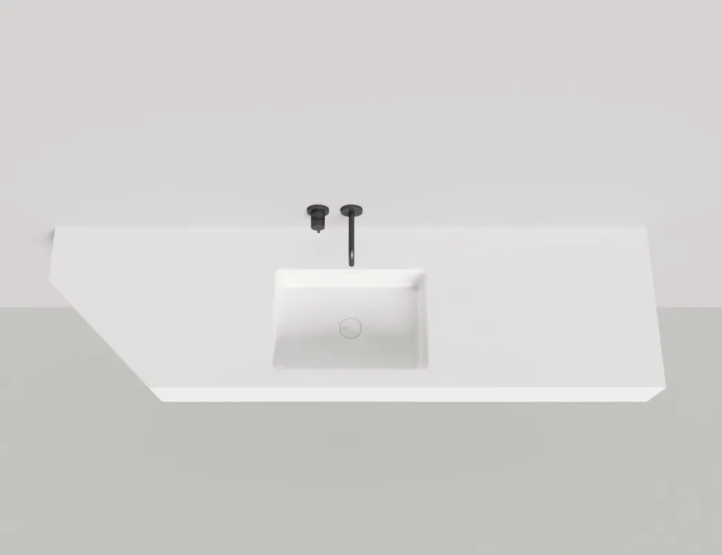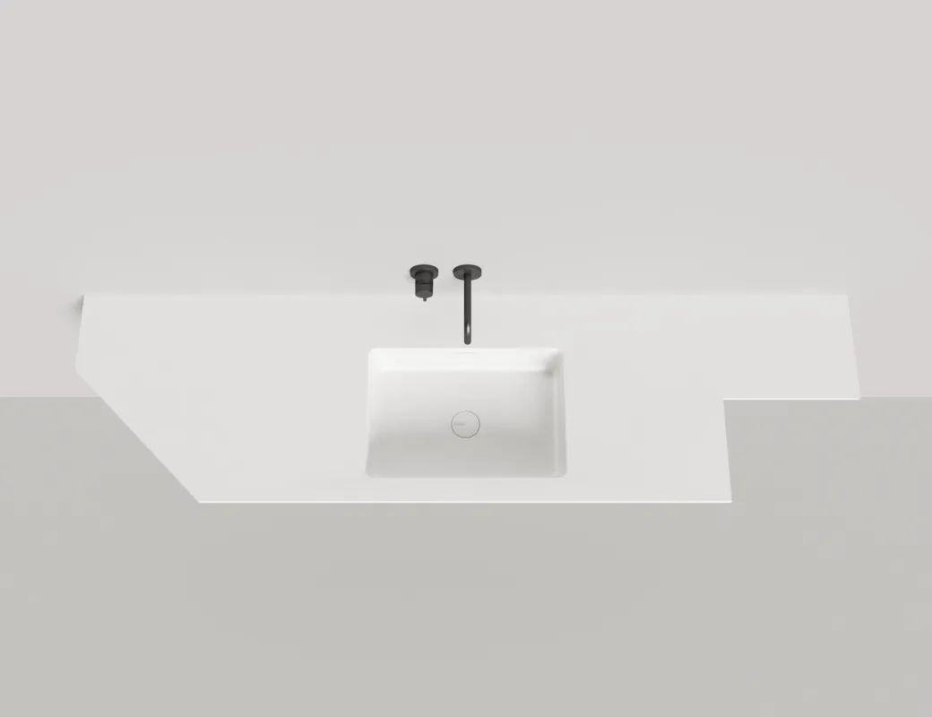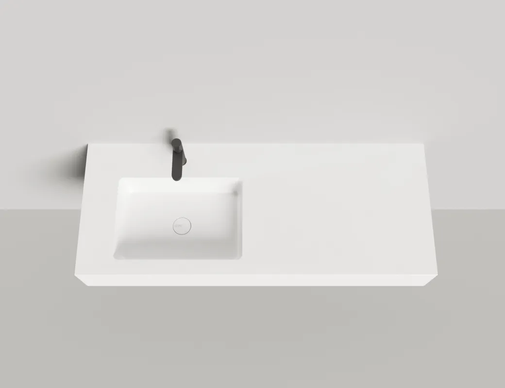 Раковина БЕЗ отверстия* под смеситель, донный клапан. ONDA PLUS - индивидуальный размер раковины- столешницы ограниченный только геометрией чаши. В том числе возможно изготовление вариантов с левым / правым крылом для установки над стиральной машиной. Возможно изготовление с фартуком |