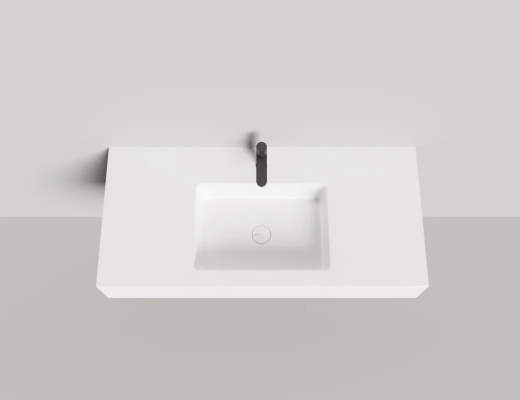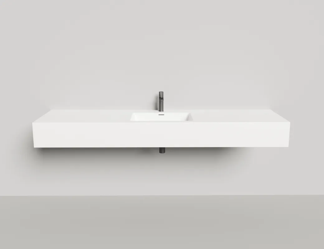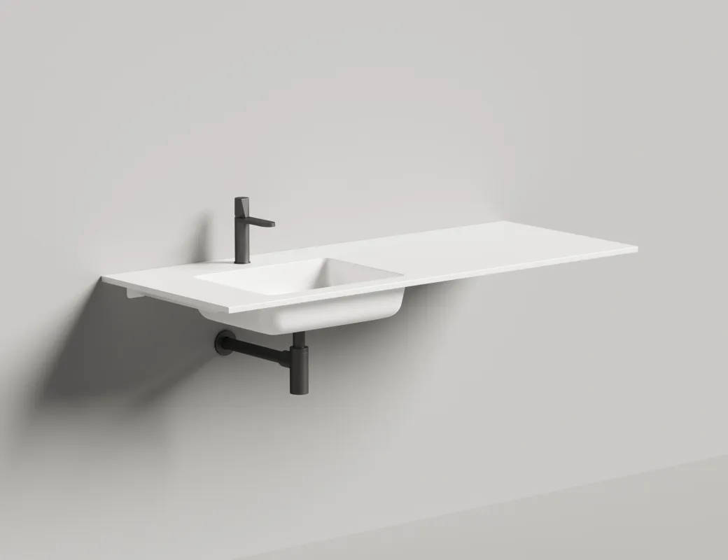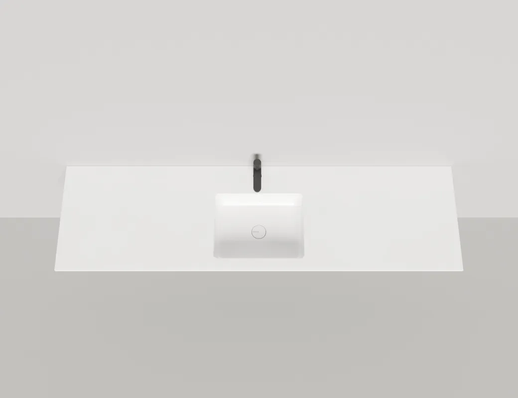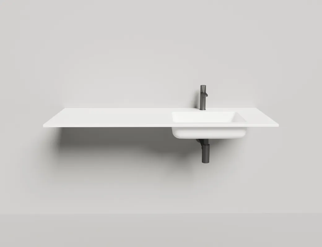 Раковина БЕЗ отверстия* под смеситель, донный клапан. ONDA PLUS - индивидуальный размер раковины- столешницы ограниченный только геометрией чаши. В том числе возможно изготовление вариантов с левым / правым крылом для установки над стиральной машиной. Возможно изготовление с фартуком |