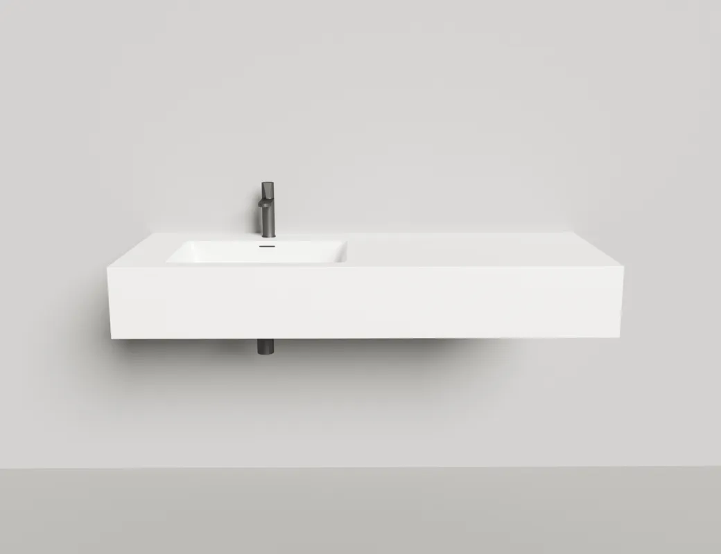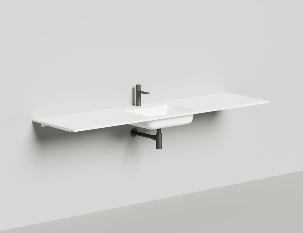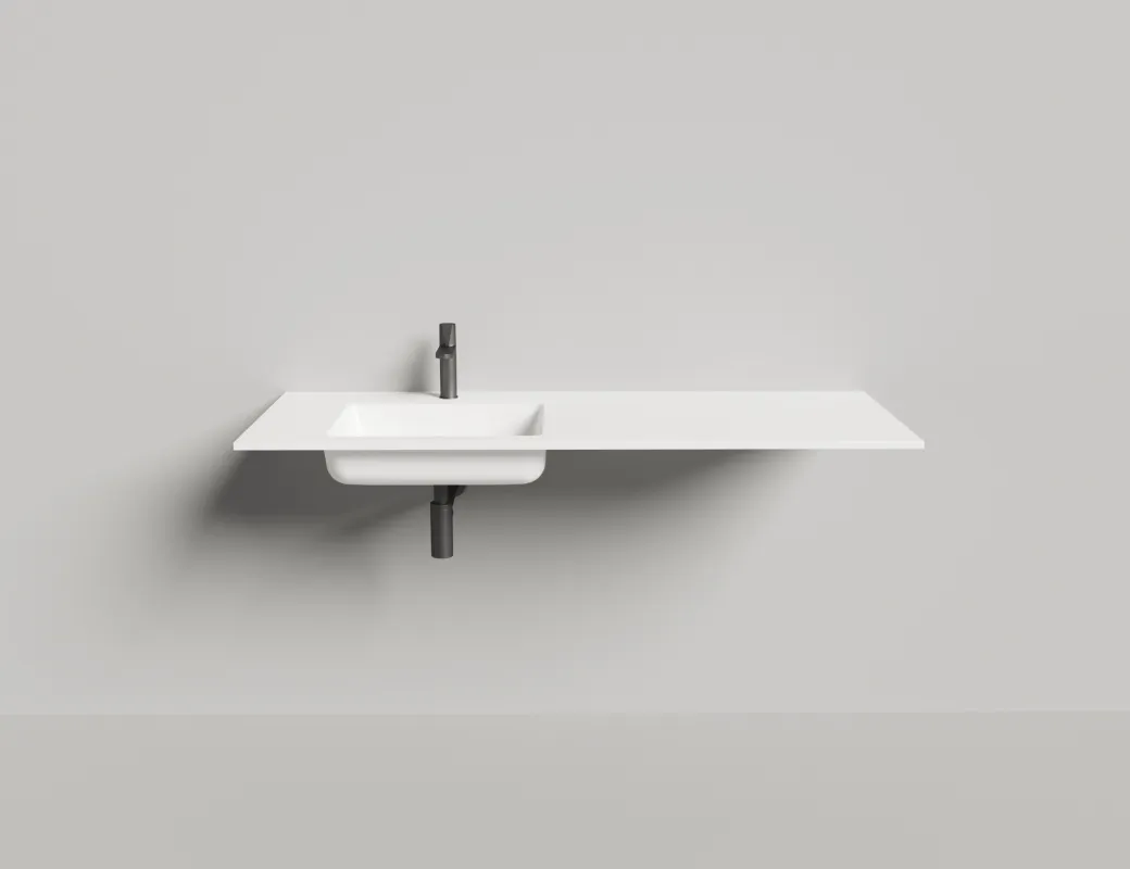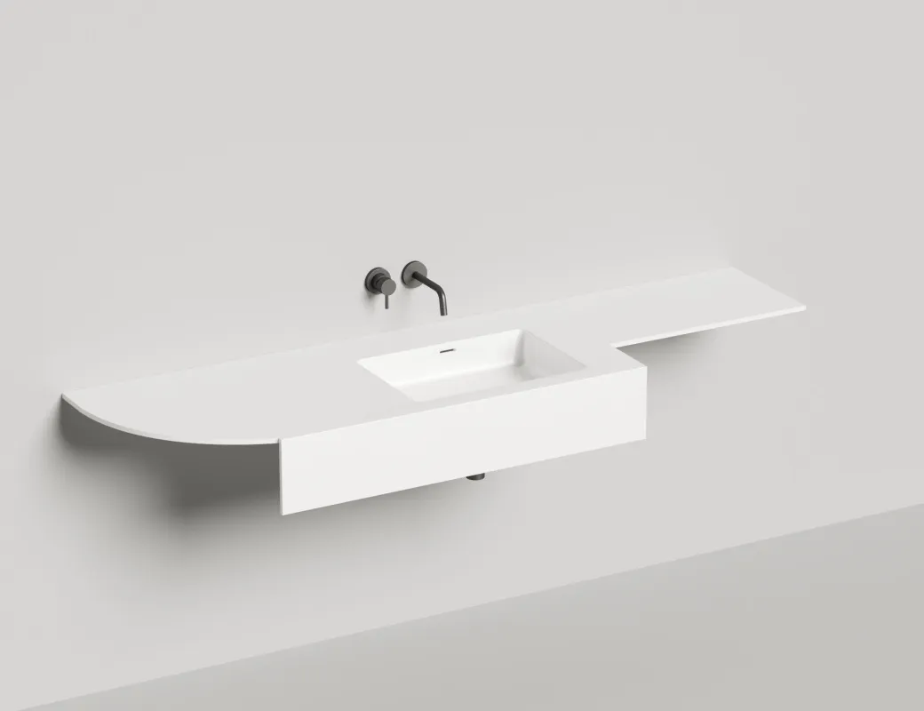 Идея и основное преимущество продукта – в широких возможностях индивидуального обреза, который ограничен только геометрией чаши. В том числе возможно изготовление вариантов раковины с левым / правым крылом для установки, например, над стиральной машиной.