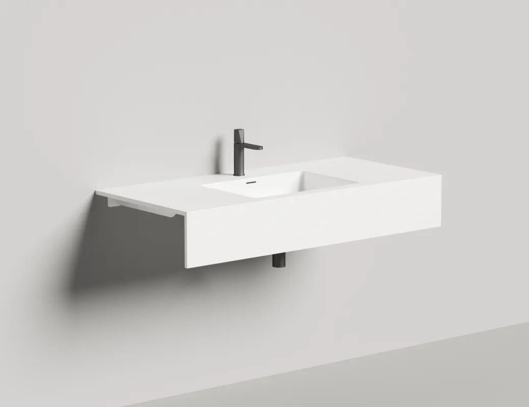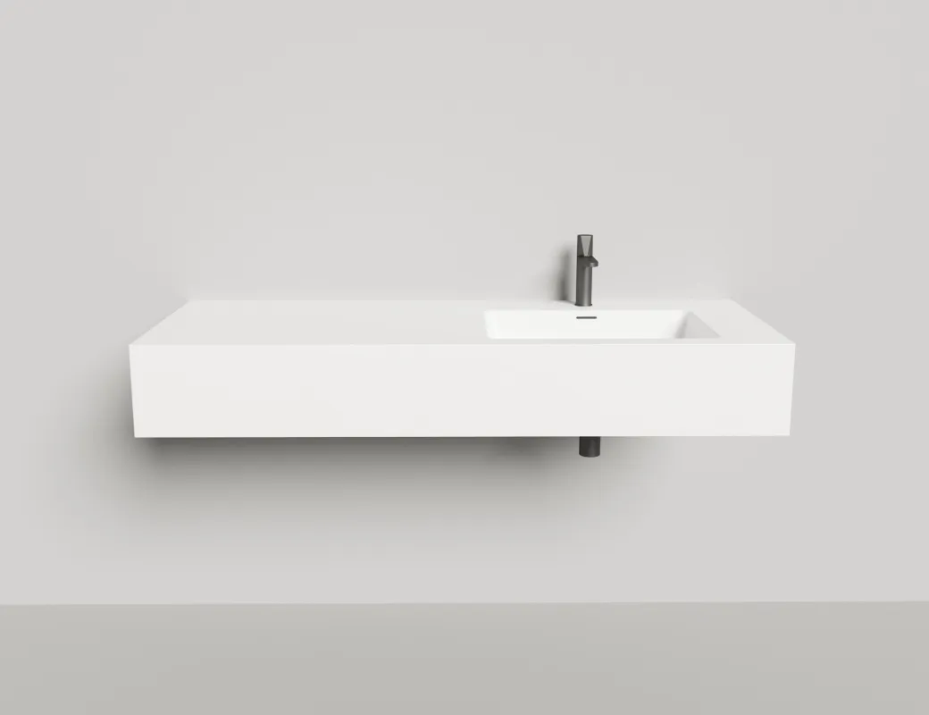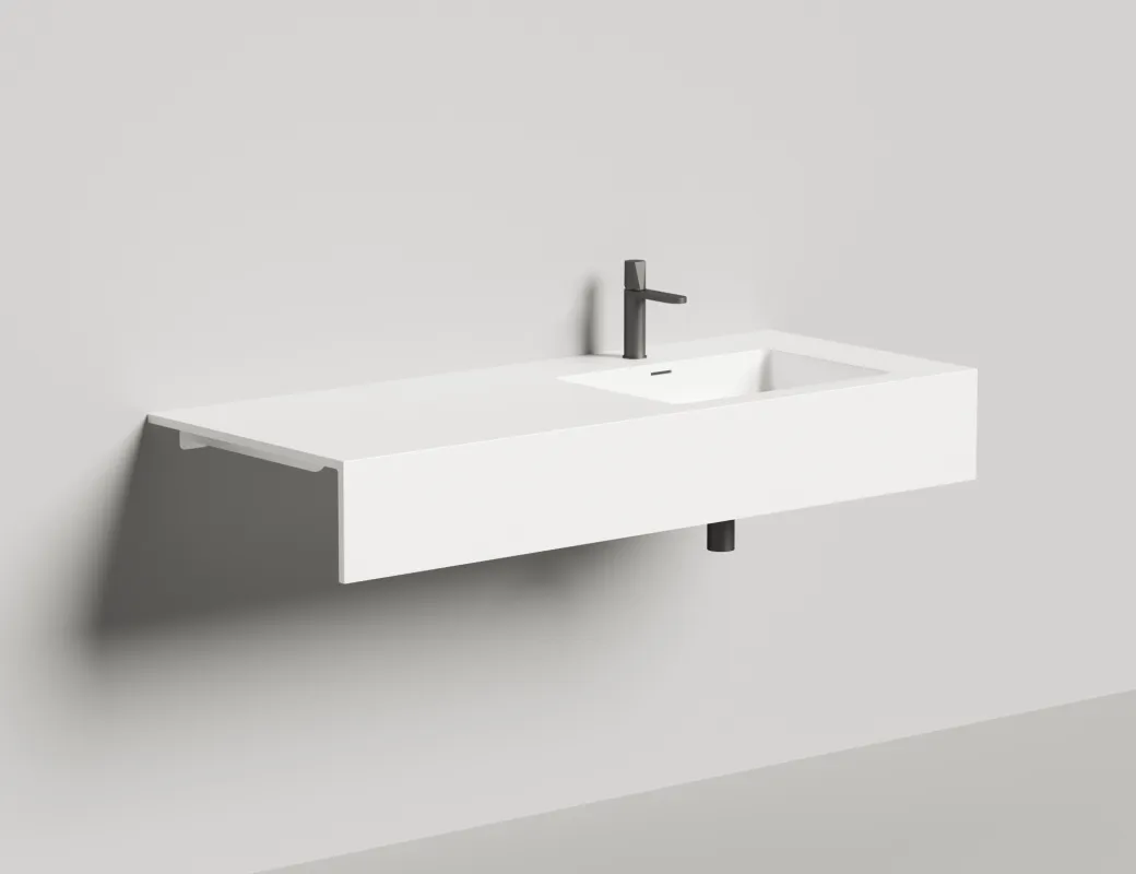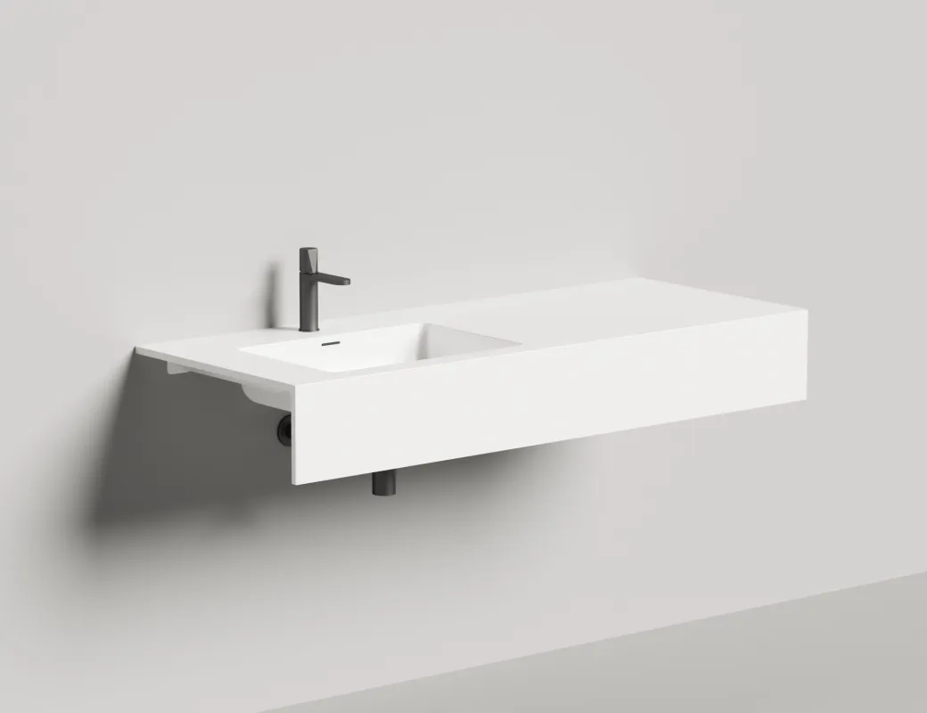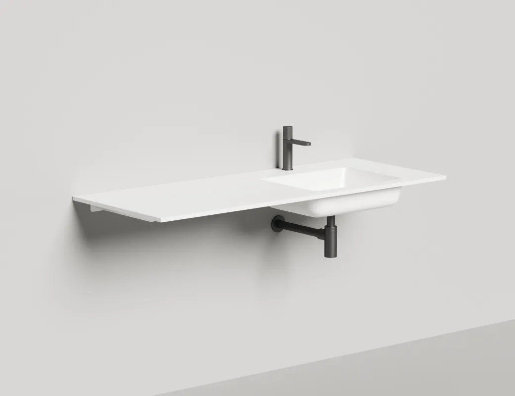 Идея и основное преимущество продукта – в широких возможностях индивидуального обреза, который ограничен только геометрией чаши. В том числе возможно изготовление вариантов раковины с левым / правым крылом для установки, например, над стиральной машиной.